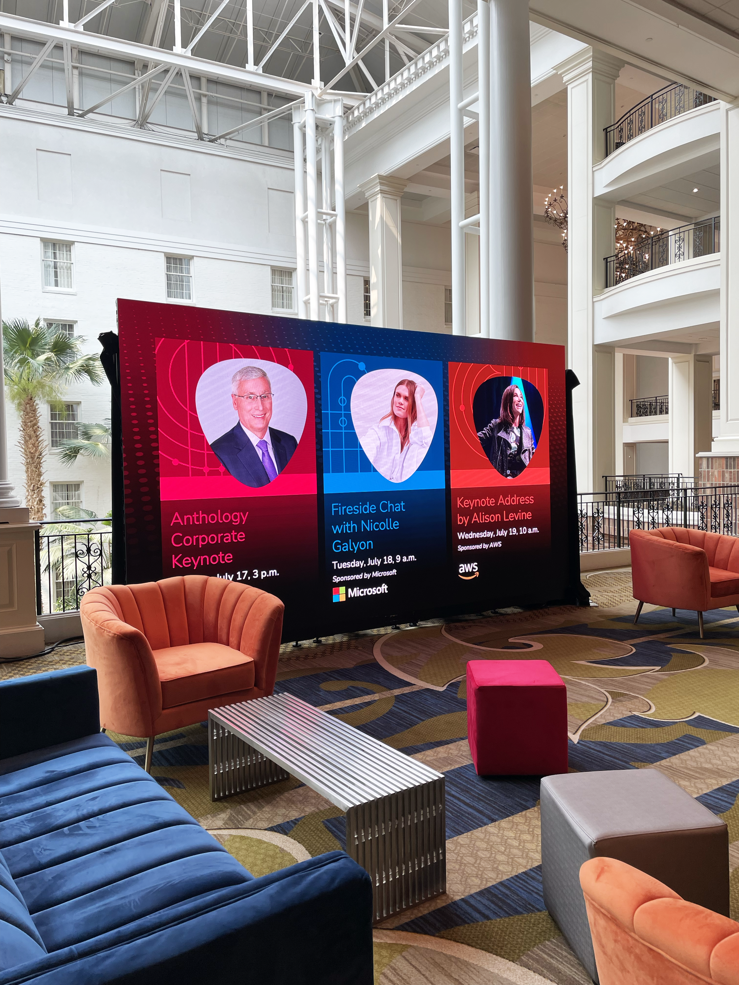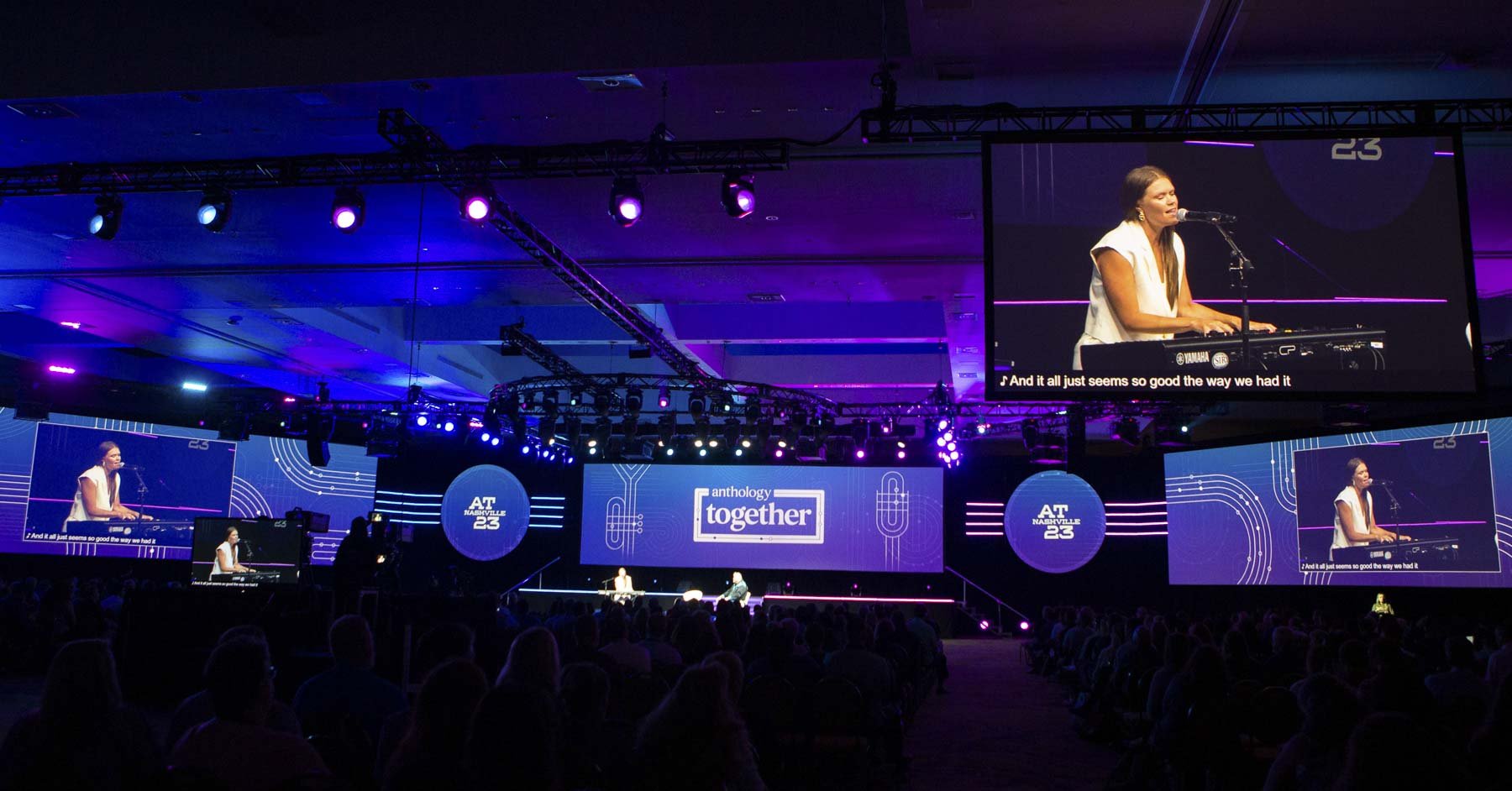 Anthology Together 2023 was one of the yearly main conference of the Eduction and Technology multinational company, Anthology. This event reunites people from all-over the Ed-tech industry from around the world, completing a reunion of 3,000 people per year. Since it took place in Nashville, the challenge was to integrate both the undeniable musical identity of the city, with the technology nature of the company and the solutions it offers.