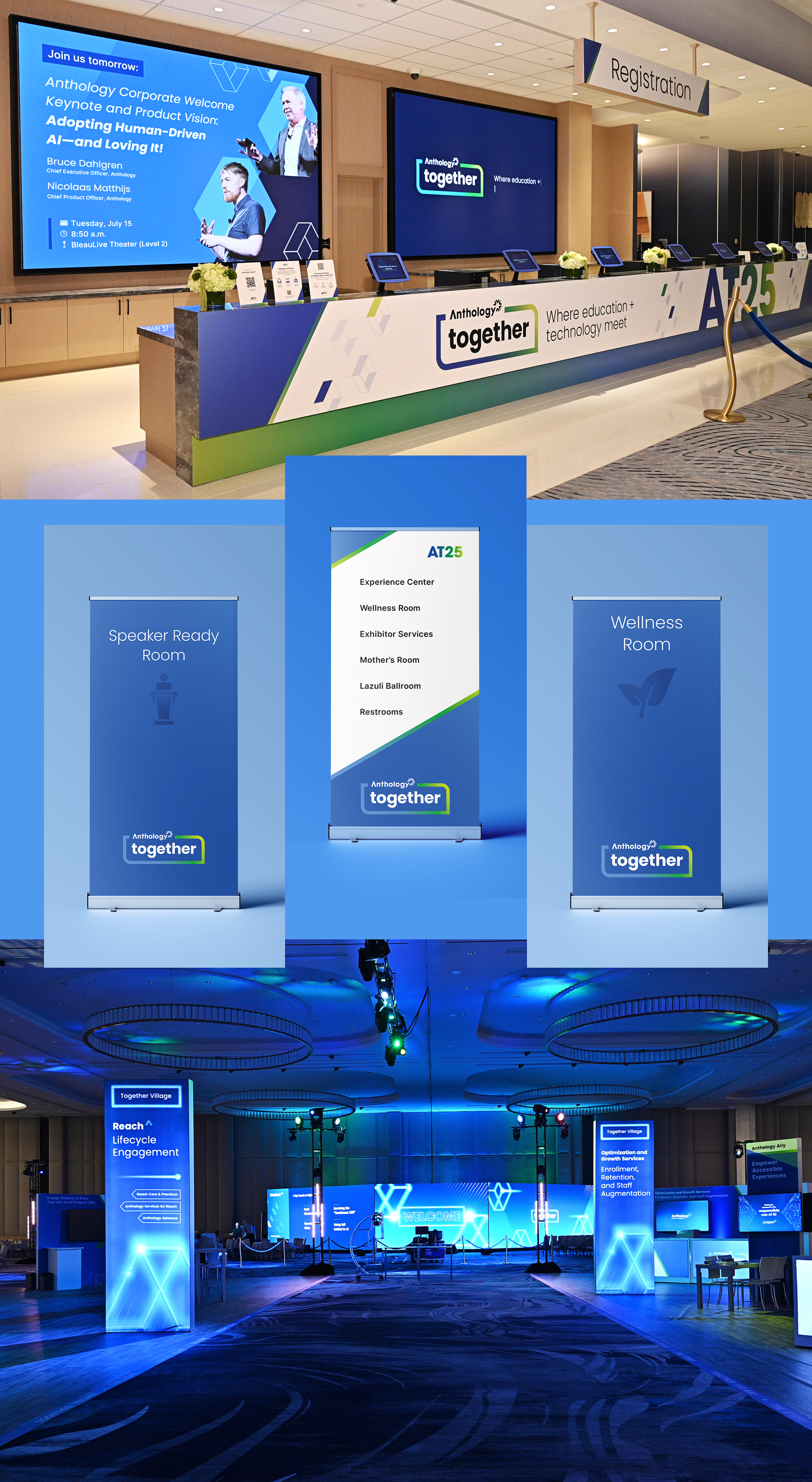 Anthology Together 2025 was Anthology Inc. yearly conference were new products, solutions, and technology innovation were announced. I was challenged with the creation of elements that mediated between both education-technology, and the Las Vegas vibrant aesthetic, the latter being the host city.