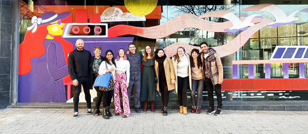 The challenge was to create a harmonios, quintessential Barcelona scene, with a reduces color palette, since the materials for executing the mural were limited. During a whole school week, the whole class helped out in bringing my vision to life, on a 36 m by 3 m glass window on the first floor of the hotel.