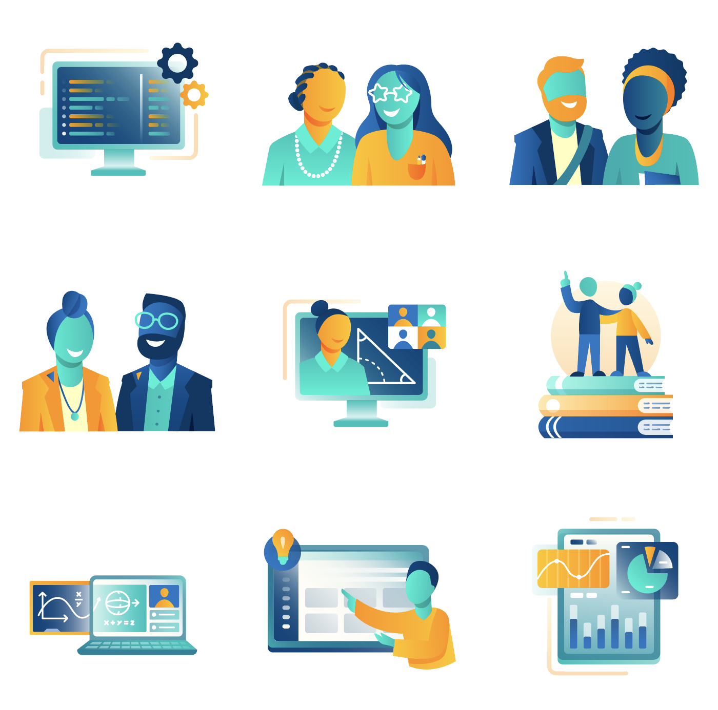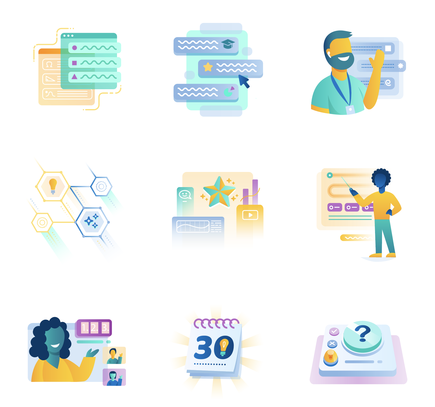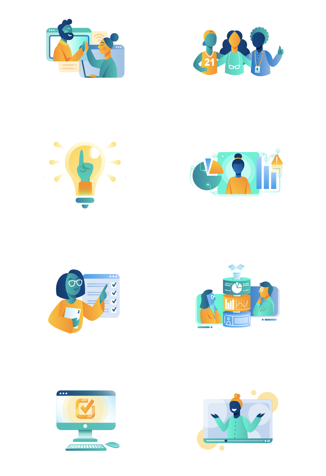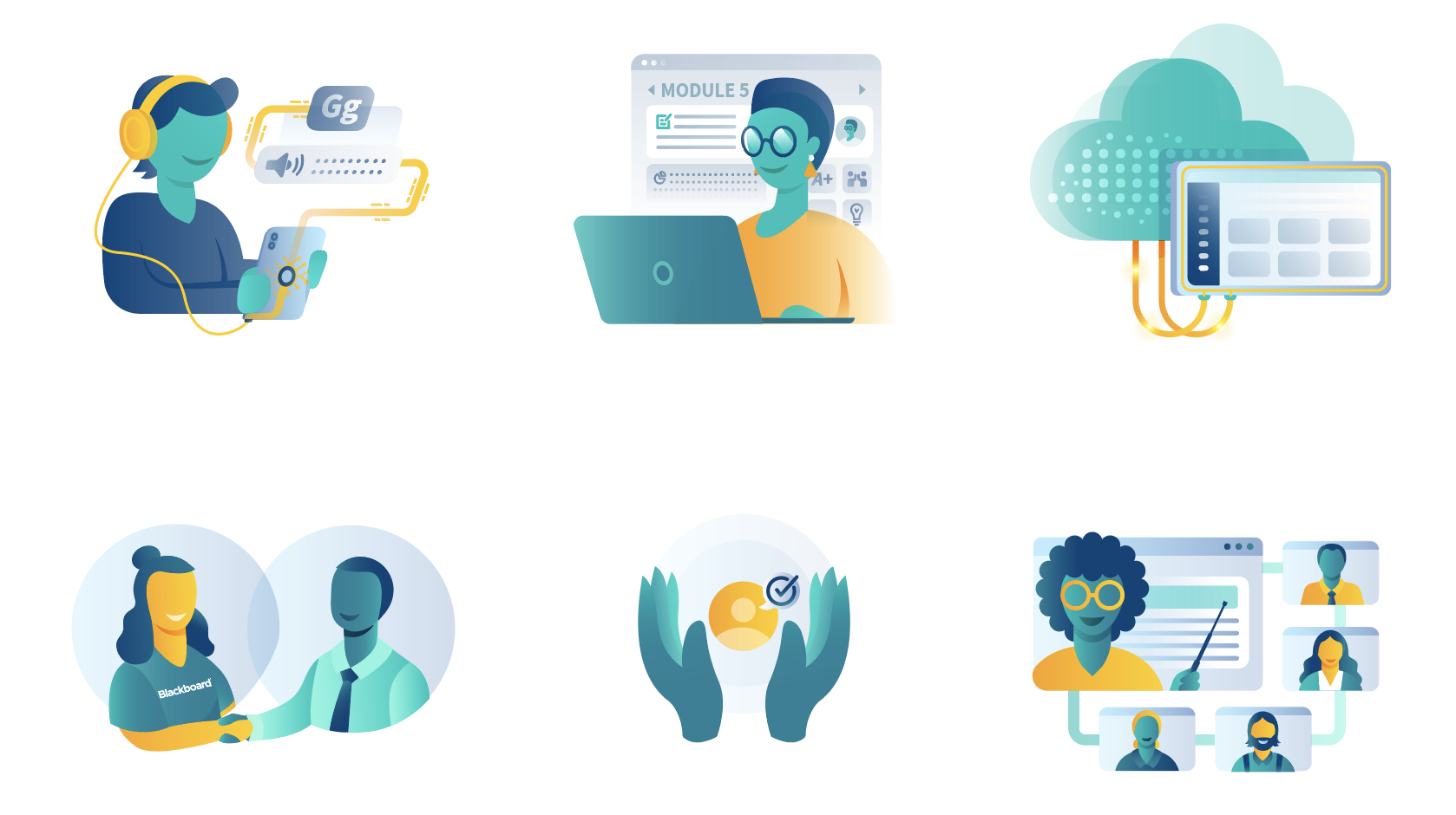 This is a collection of the vector art I've created for Iconography projects for Blackboard Inc. between the years of 2020 and 2022, before the company merged with anthology Inc. Each Icon is custom made, and followed faithfully the brand guidelines and values of the company.