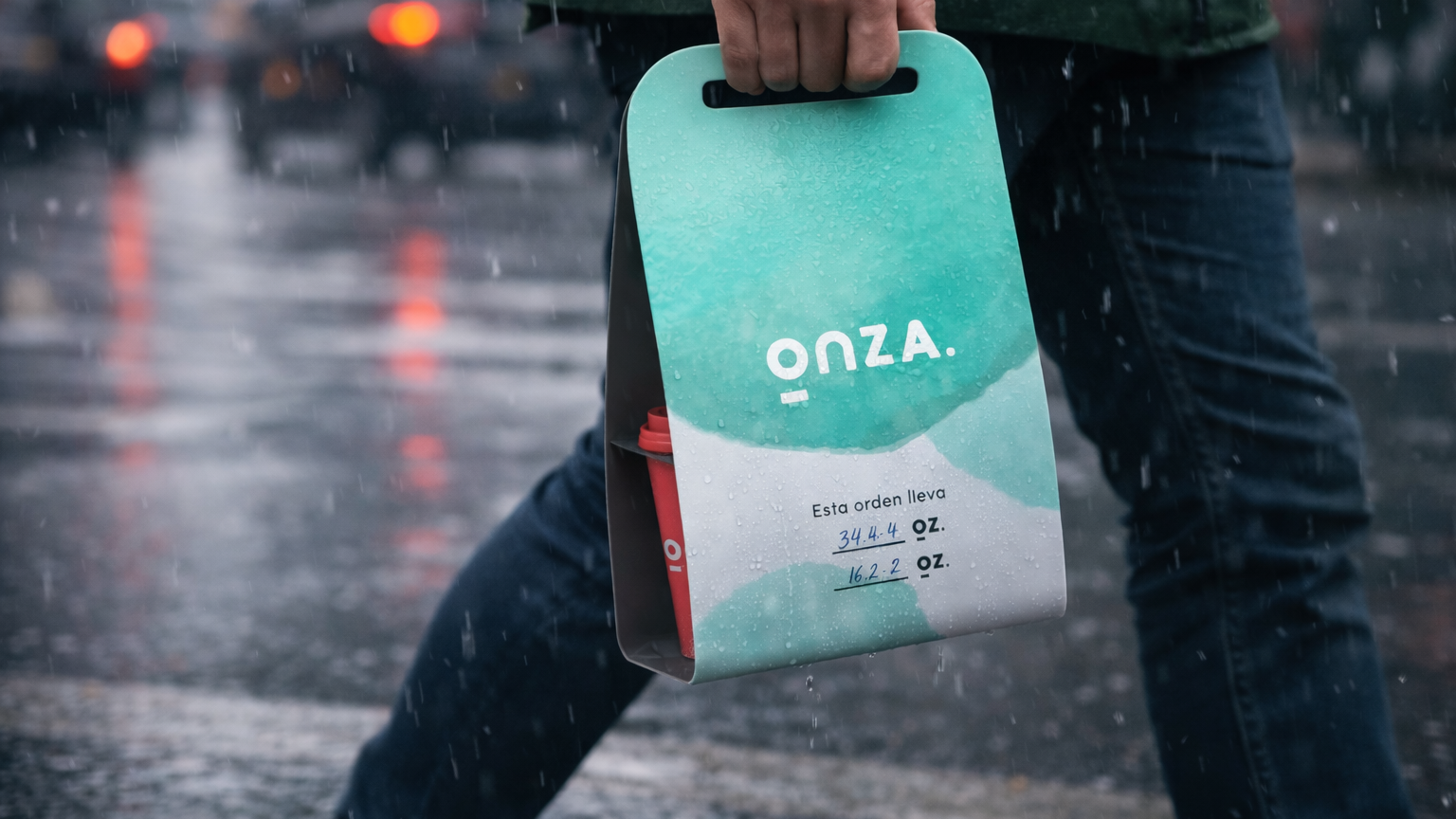 The ‘o’ in the main logo represents the ‘ounce’ (Onza) unit of measure, place over a surface that’s weighting it. This concept is represented in two of the logo variations, plus a stamp-symbol that can be used across all circular elements found in a typical café environment (dishes, mugs, bottles, coasters, etc)